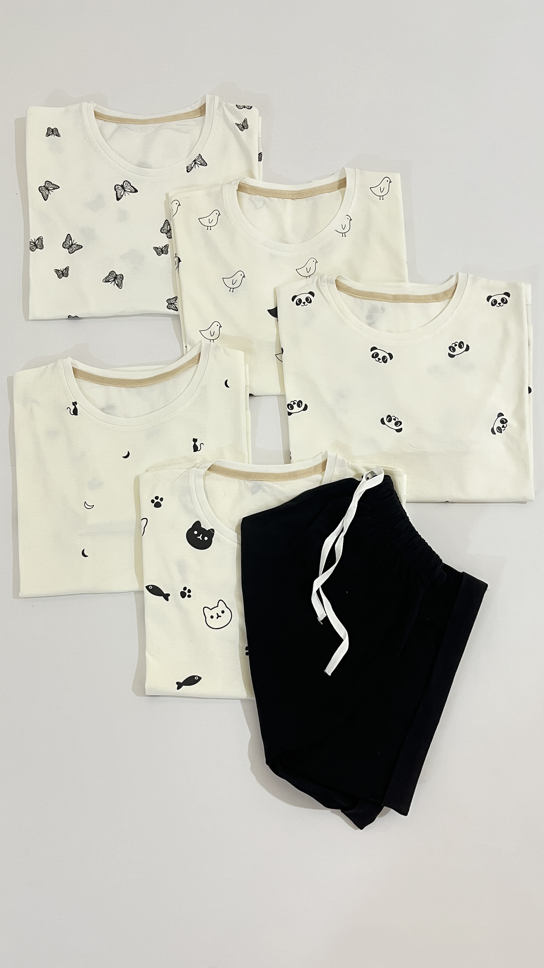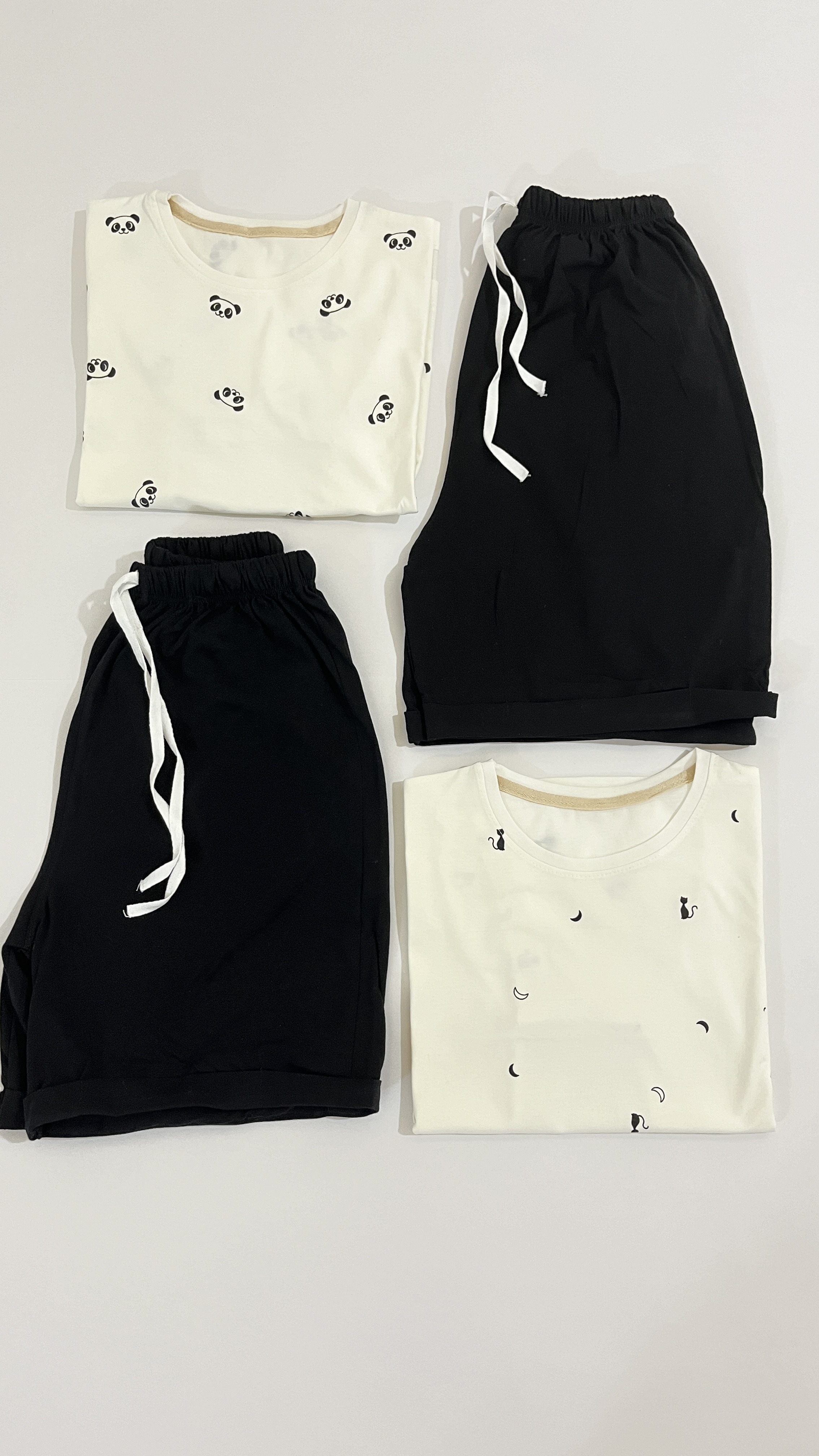 ست نیشرت و شورتک میکس سفید مشکی در پنج طرح جذاب ارائه میشه،از لحاظ کیفیت این تیشرت و شورتک درجه یک هستن،بسیار خوشگل و فانتزی♥️